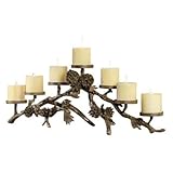 I love this candle holder! I switch it out between my entertainment center and a short china hutch in my dinning room when I have company. It's made for a 4" wide candle but, I couldn't find any that size that were reasonably priced. However, it looks good with the standard 3" candle which is what I'm using presently. My china hutch is 6 and 5/8" and one foot hangs over a bit. It's made for a 7" wide shelve. Last Christmas I purchased pinecone candles (4" at Big Lots) and it was an exceptional display. I first saw this in a catalog, which was really pricey. I'm so glad to find the same quality piece at a much lower price. I really love this piece with the 7 candles; it's stunning!